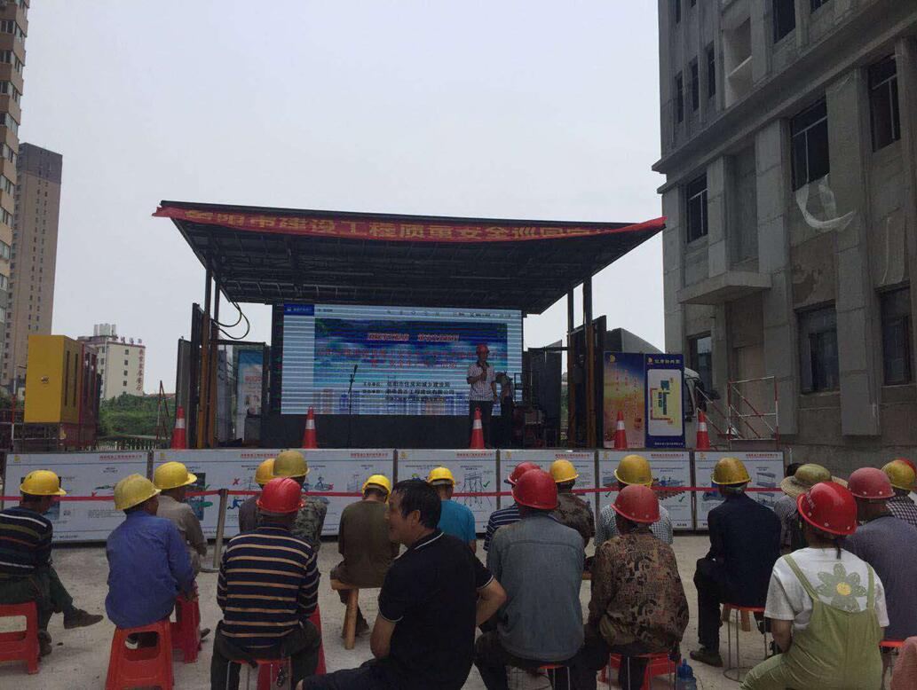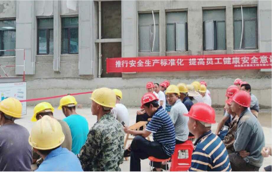 2020年7月2日由岳阳市住建局发起,在江南仕家中心项目部组织了“建筑施工安全生产月”宣传活动。现场通过讲解安全防护知识,看警示宣传片,发放安全教育资料等手段,从常见的消防、施工用电、高处作业等方面宣传了安全工作的重要性和着重点。项目经理李卫东做了现场工程质量安全教育开场演讲。