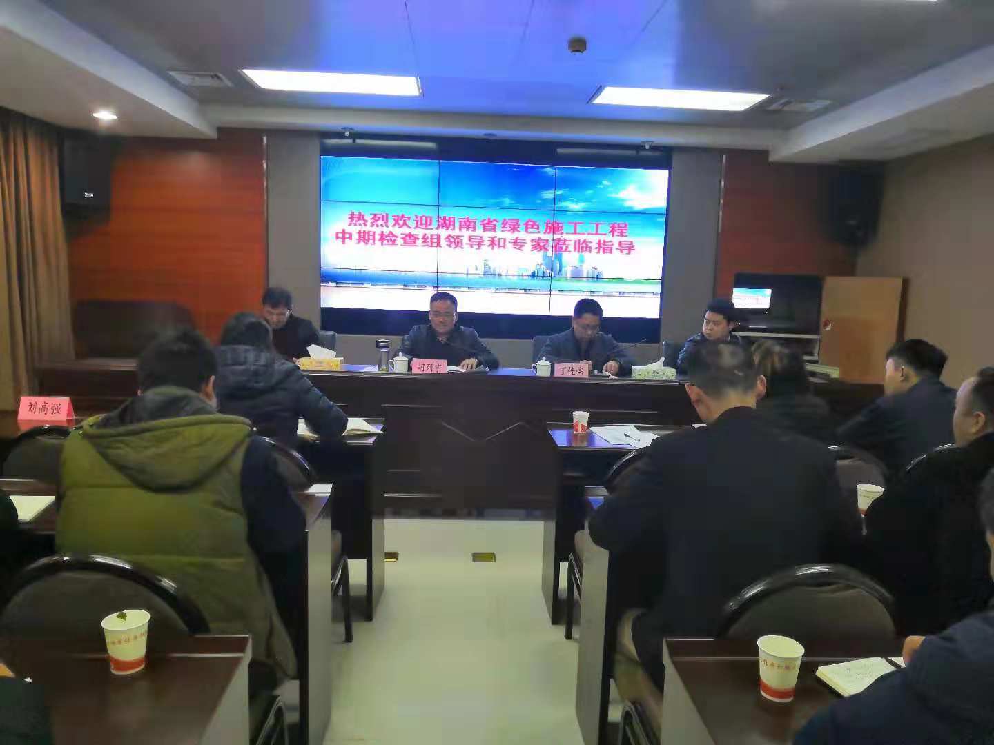 下午14时30分,在省住房和城乡建设厅处长廖序与胡列宇副局长的带领下,各领导、专家组成员一同前往“ 盛玺·河山岭秀”项目进行绿色施工中期检查,并由我公司副总经理周海文组织召开“湖南省绿色施工工程中期检查(第九批)专家评审会。会议分为四部分: