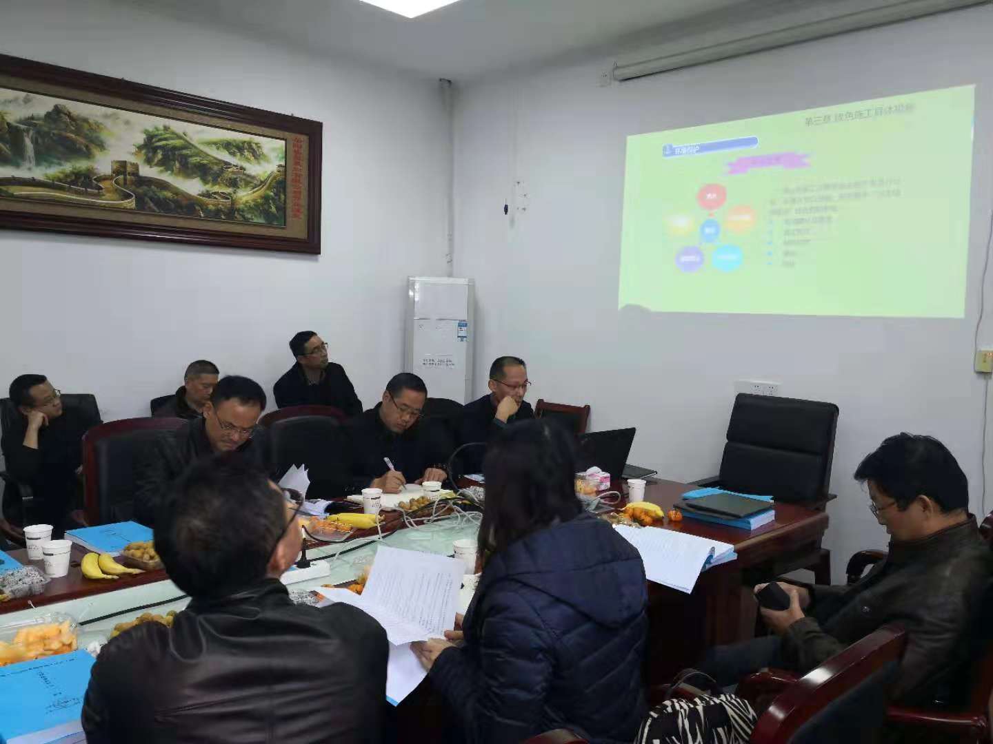 一、由我公司此次绿色施工总负责人周海文进行绿色施工情况汇报(PPT);
