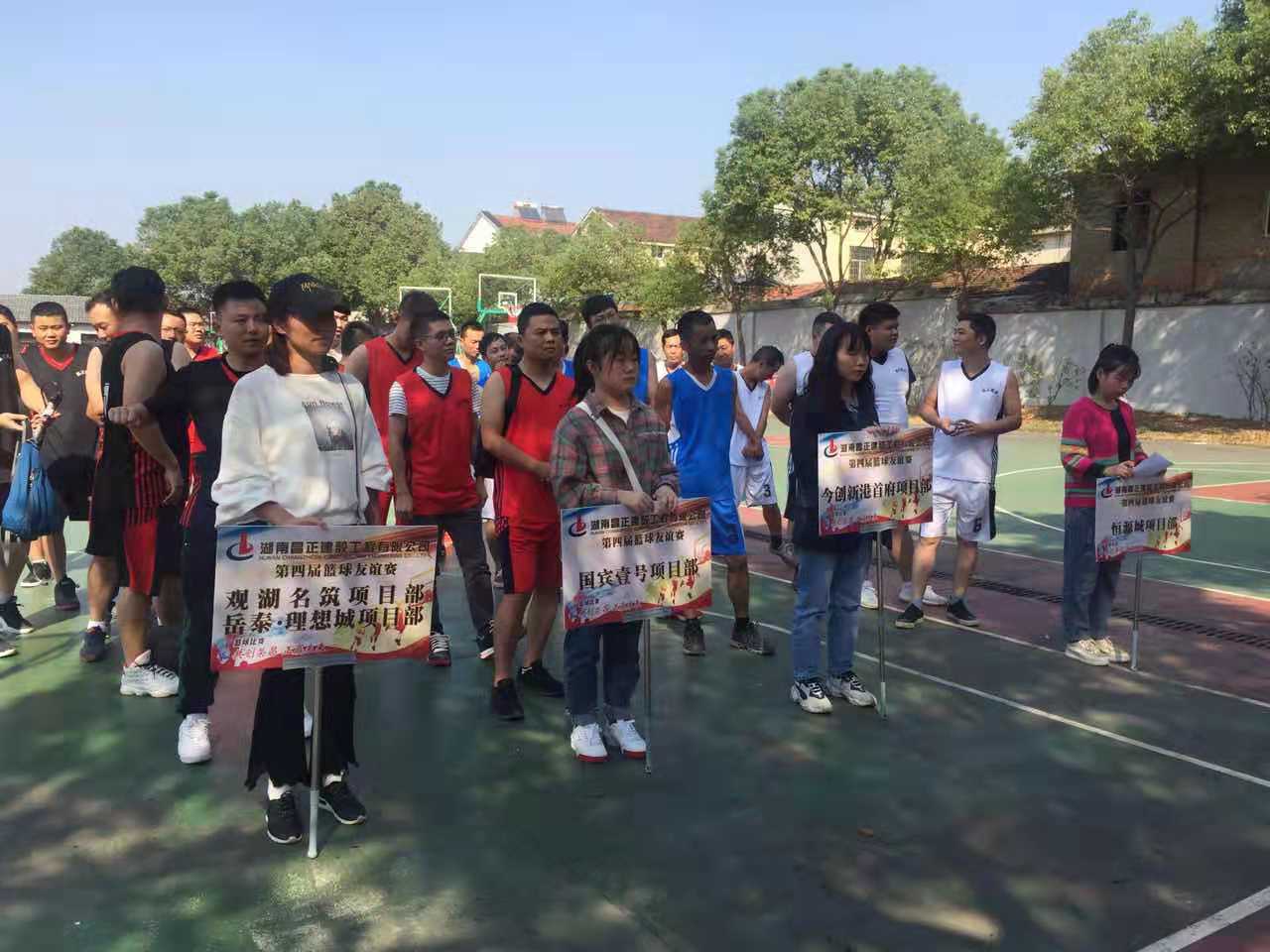 金秋十月,在这秋风送爽的季节里,我公司2019年第四届“昌正杯”篮球友谊赛,于10月18日下午在华夏学校拉开序幕。这次比赛,有恒源城项目队、今创新港首府项目队、国宾壹号项目队、观湖名筑项目和岳泰·理想城想项目联合队四支参赛队伍参与其中。