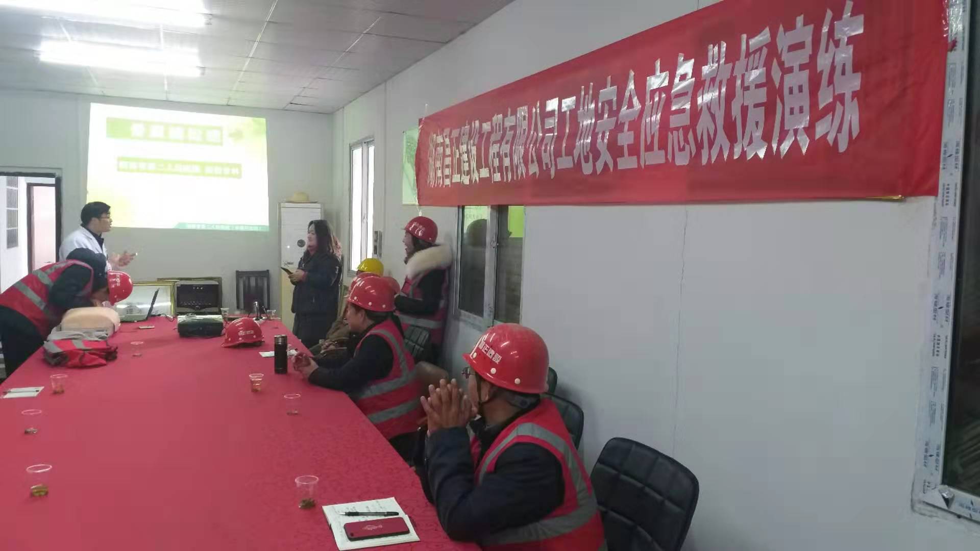 为了进一步加强施工现场的安全生产工作,增强全体作业人员的应急救援安全意识和急救能力。2019年12月20日下午,由我公司安全管理部牵头组织的施工现场“应急救援”演练培训在江南仕家中心项目部举行。