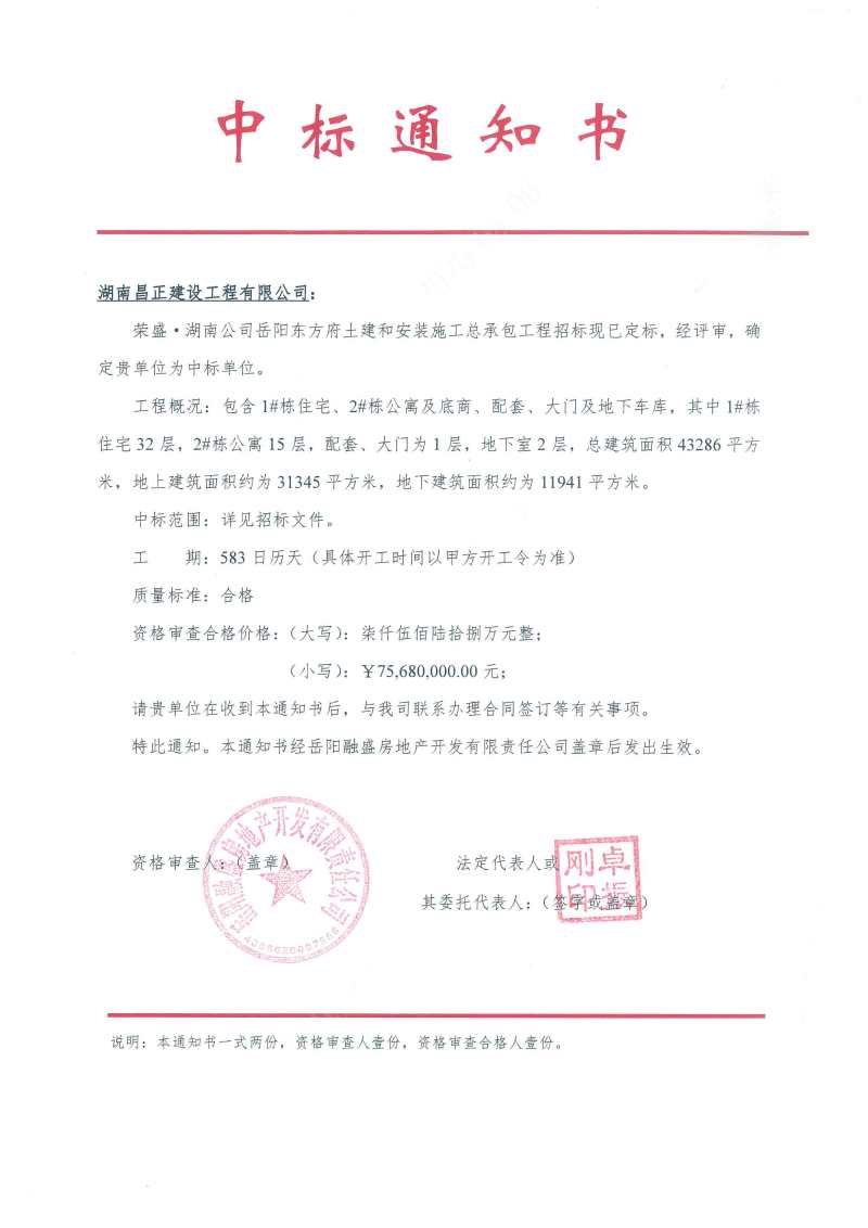 2020年4月6日,公司中标荣盛·湖南公司岳阳东方府土建及安装工程施工总承包工程。