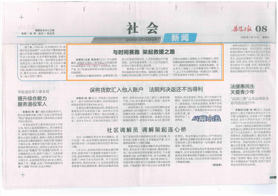 与时间赛跑,架起救援之路(岳阳日报报道)
